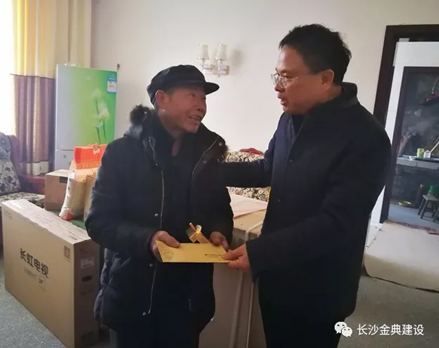 2018年2月7日,正值年關(guān)歲末,公司年底工作紛繁復(fù)雜,為了讓貧困戶度過一個喜慶、祥和、溫暖的春節(jié),董事長蔡躍武與副總姜冬良、文少柱帶領(lǐng)公司一行又逐戶走訪,進(jìn)行春節(jié)慰問。給每戶幫聯(lián)戶送去了慰問金2000元,大米2袋,食用油2桶等慰問物資。